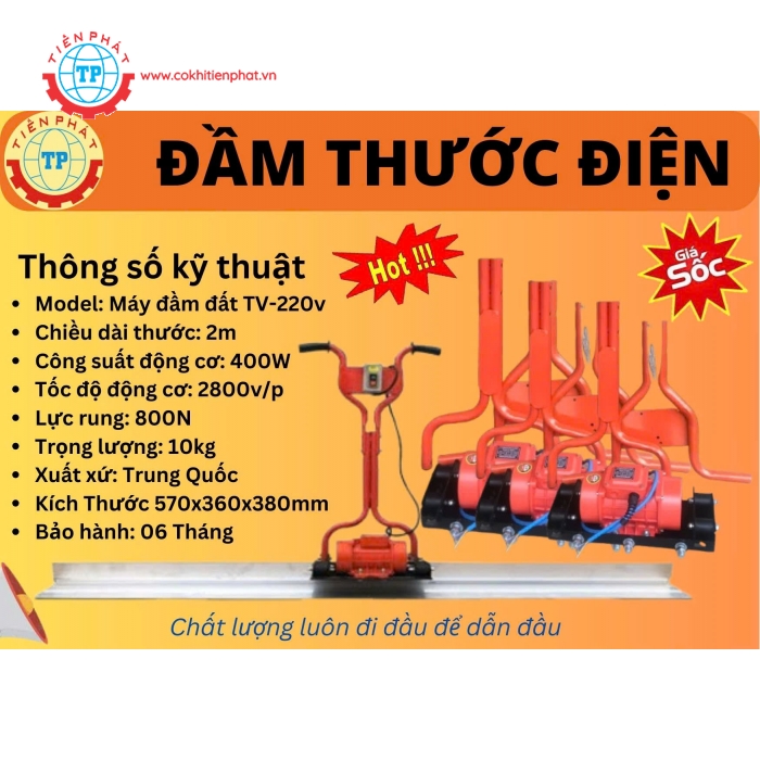 Tại Công Ty TNHH TM và XNK Cơ Khí Tiến Phát, chúng tôi phân phối đầm thước điện TV-220V chính hãng, bảo hành 6 tháng.