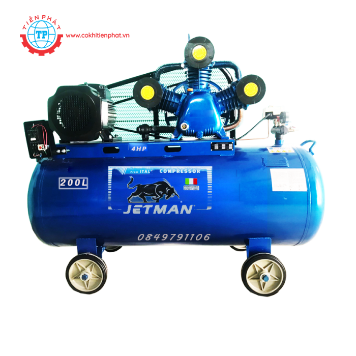 • Máy nén khí dây đai 3 piton 200L  Jetman Với thiết kế thông minh, có hệ thống tay cầm và bánh xe giúp  dễ dàng di chuyển ra mọi vị trí.