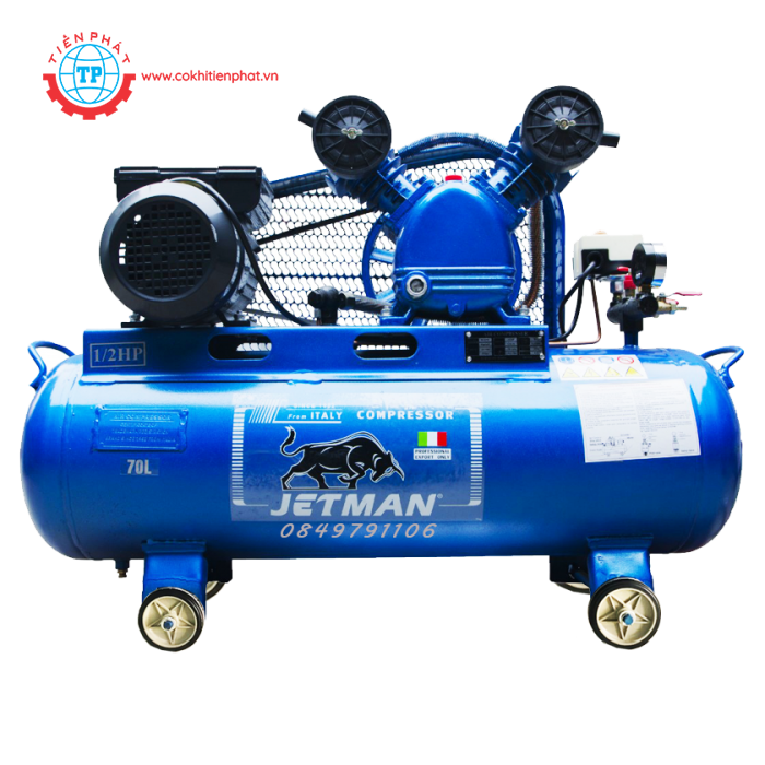 Máy nén khí dây đai Jetman 70L-1/2HP hoạt động với công suất ½ HP cùng đầu nén 2 piston cho năng suất làm việc của máy nhanh và mạnh mẽ. Với áp lực khí nén lên tới 8 bar giúp máy làm việc ổn định, đạt hiệu suất công việc tối đa.