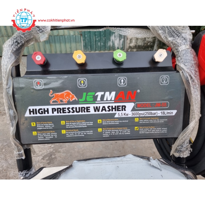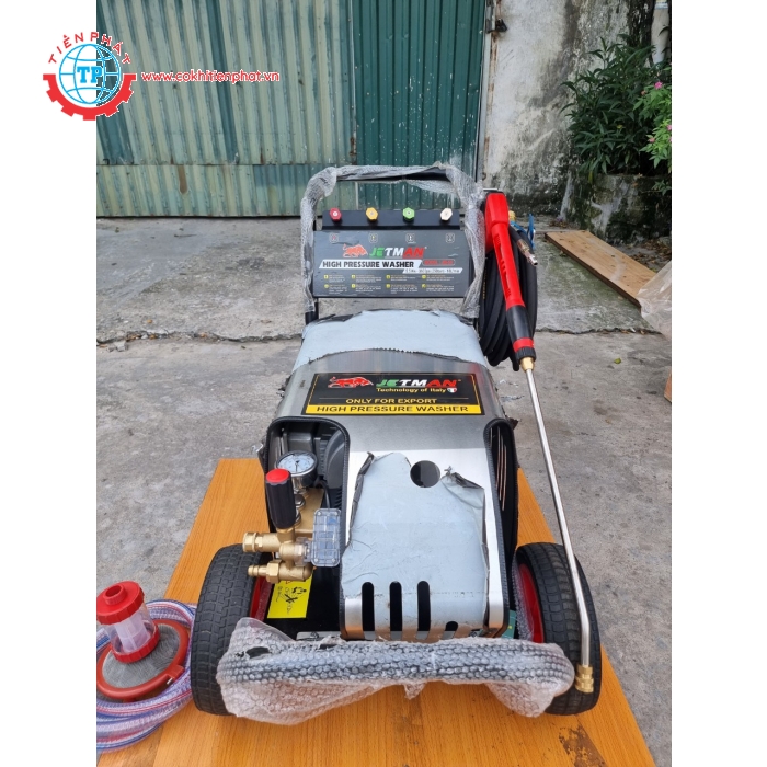 Máy rửa xe Cao áp Jetman 5,5KW  ( Điện 380V )–là  Xịt rửa áp lực mạnh, khả năng làm sạch cao được trang bị với bánh xe đẩy và khả năng tháo lắp linh hoạt các phụ kiện của máy giúp dễ vận chuyển và lưu trữ. Có nhiều tính năng, thiết kế chắc chắn, gọn nhẹ, dễ di chuyển.